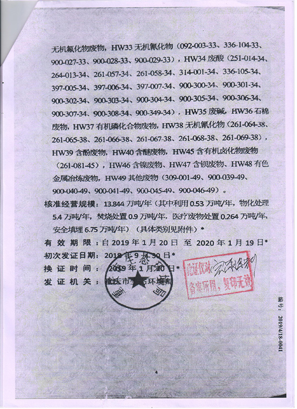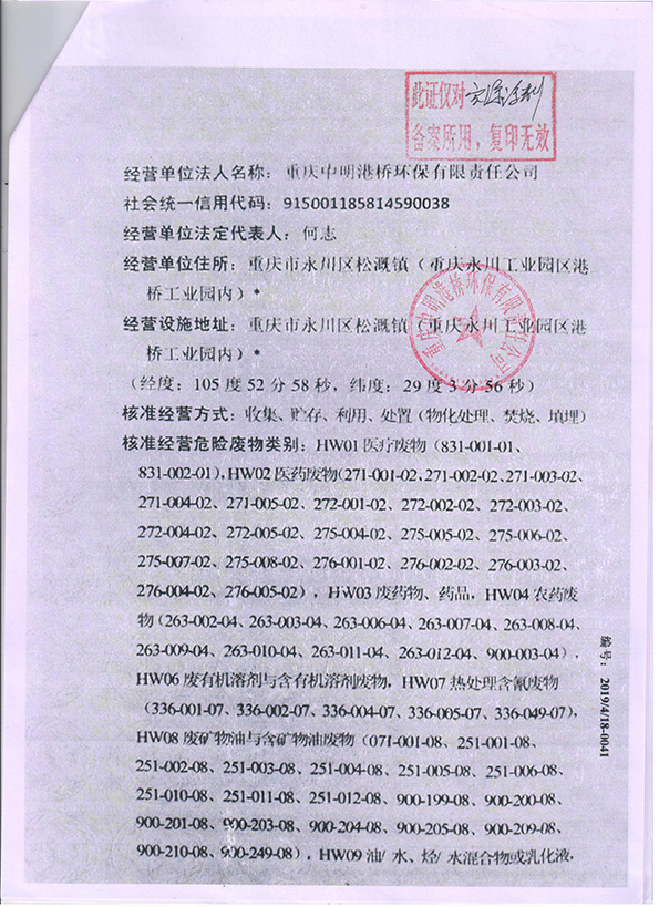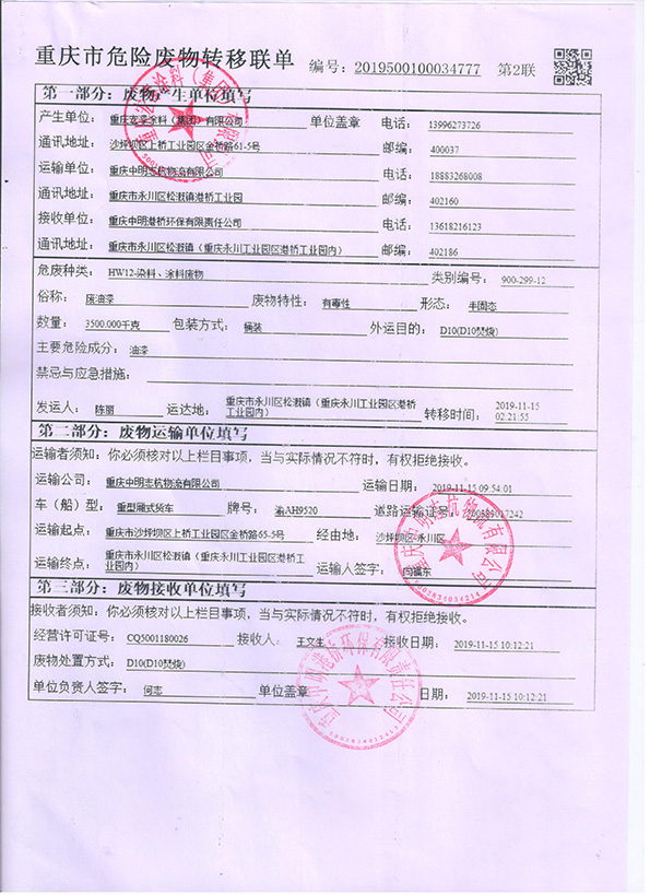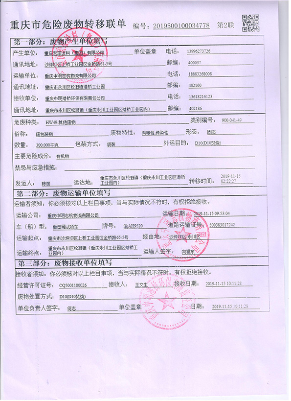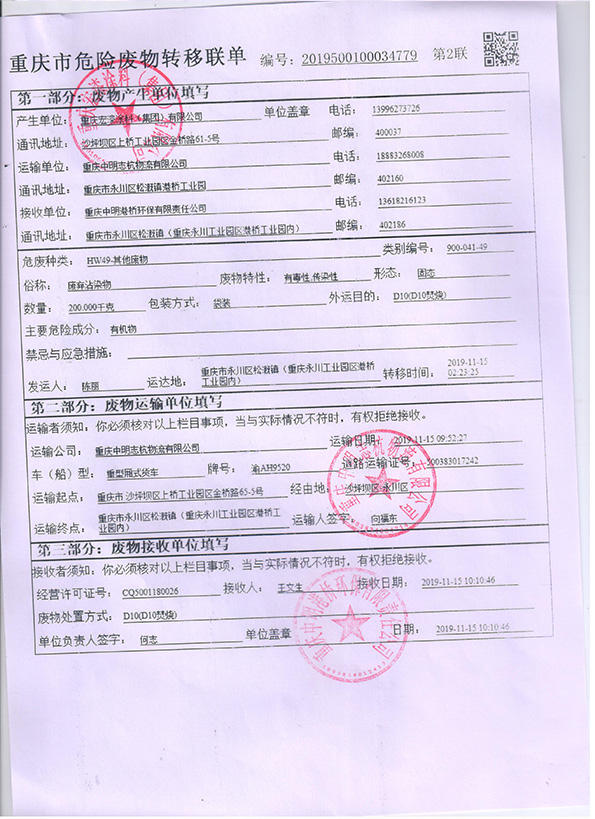 已于20191123日 在重庆市沙坪坝区生态环保局进行备案。