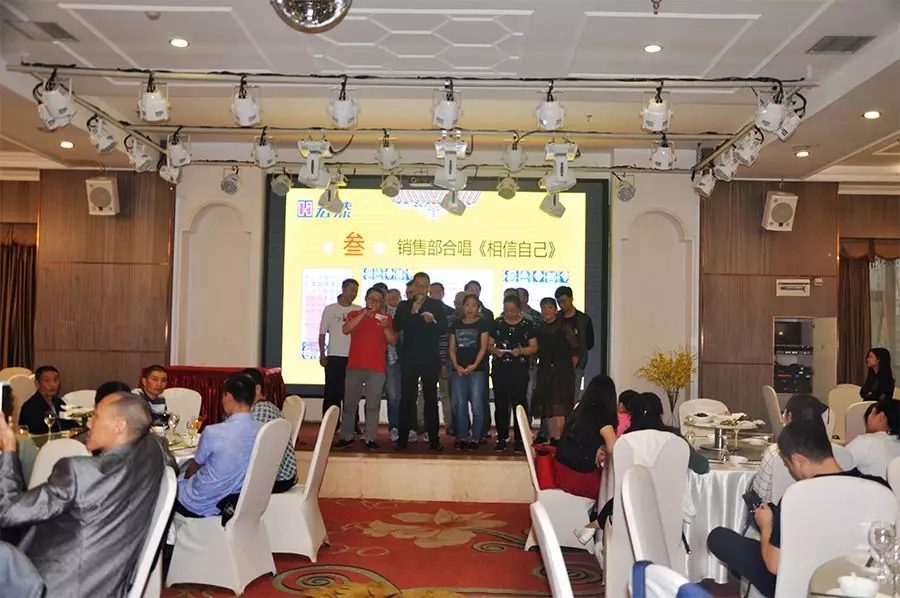 2018年10月一场以"凝心聚力.蓄势待发"为主题的晚会在宏漆集团隆重召开,会上销售部以一曲《相信自己》拉开帷幕。