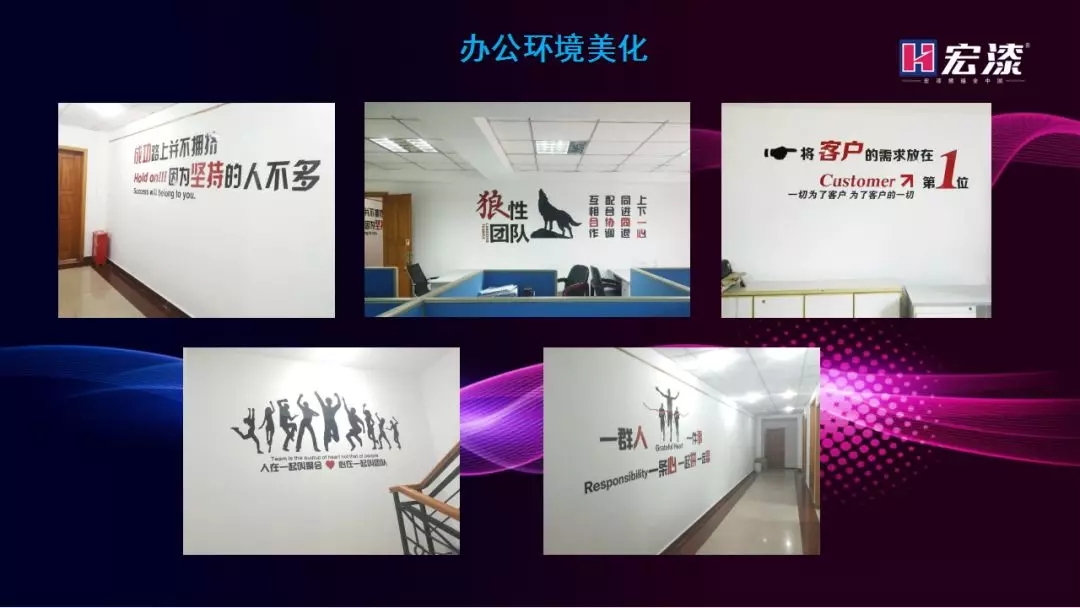 六、美化办公环境,为每个员工打造舒适而又富有激情的办公环境,让你进入公司每一天都有满满的正能量。