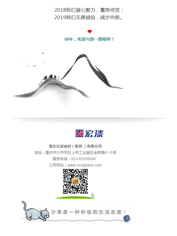 一家人,一件事,一辈子,一起拼,一定赢,2018年是宏漆改革的一年,是创新的一年,在这一年里我们苦练内功,从企业内部人员配置、产品种类的配套、市场渠道的细分、内部管理的跟进等方方面面进行完善,相信只要大家心往一处想劲往一处使,2019年将会是我们腾飞的一年。