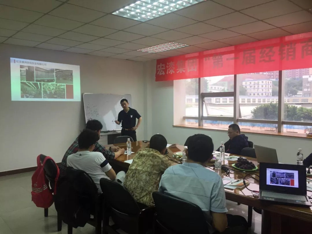 次日,张总为大家介绍了宏漆集团发展史,宏漆集团培训导师史老师讲解了《如何做好小区推广》、《油木工大会》、《大客户开发》、《涂料/涂装知识分享》等相关知识。