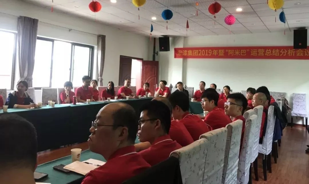 2017年宏漆集团,引进阿米巴经营模式,2019年5月10日,在引进阿米巴两年的日子里,召开了宏漆集团2019年第一度“阿米巴经营”总结分析会。